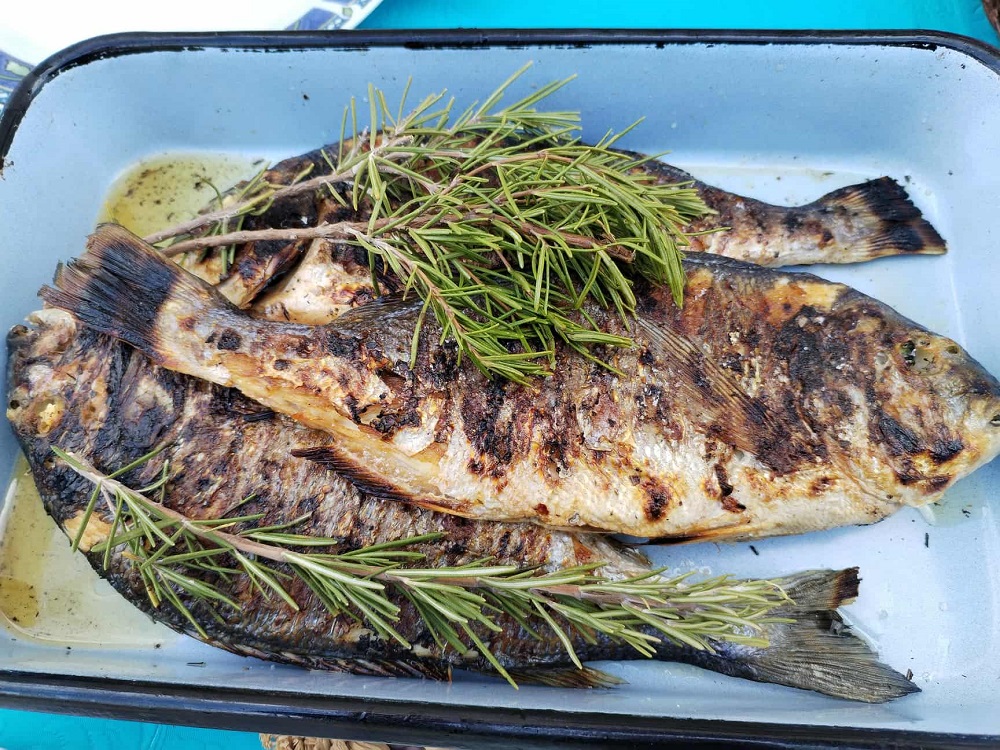 Уште ако ви се на располагање свежи морски риби од типот на орада, па уште и ако ги испечете на скара, премачкани со ладно цедено маслиново масло со 5 ѕвездички и свеж рузмарин, тогаш навистина ве очекува кралски оброк.
